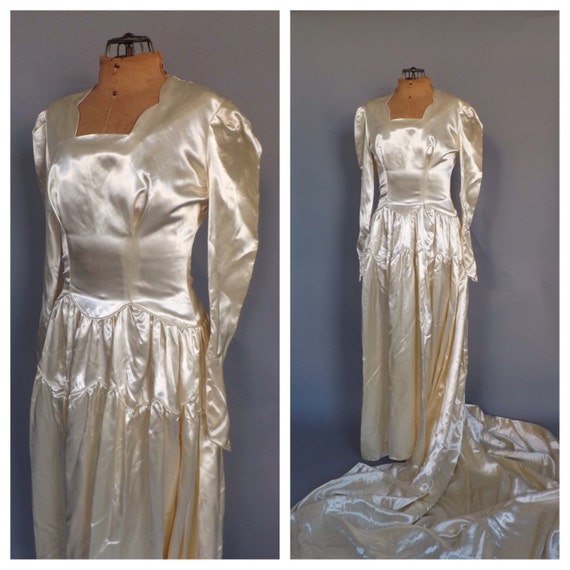 Vintage 1940s Ivory White Satin Wedding Gown 30s Fitted Long Etsy