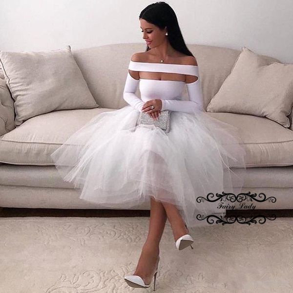 2018 White Little Short Beach Wedding Dresses With Long Sleeves