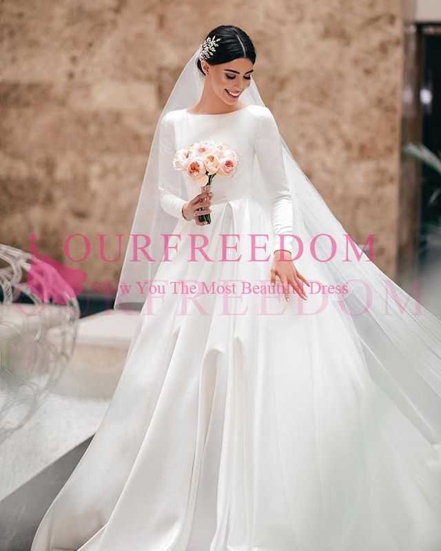 Discount 2019 Elegant Bateau Neck A Line Wedding Dresses Long