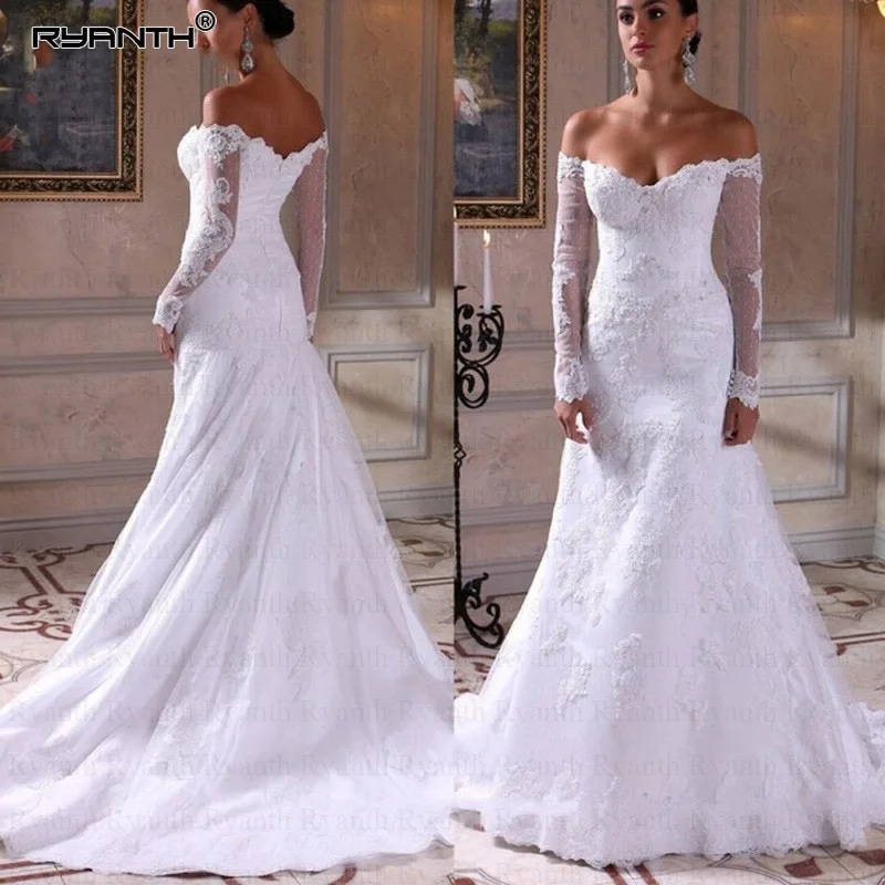Ryanth Off The Shoulder Long Sleeve Mermaid Wedding Dress 2019
