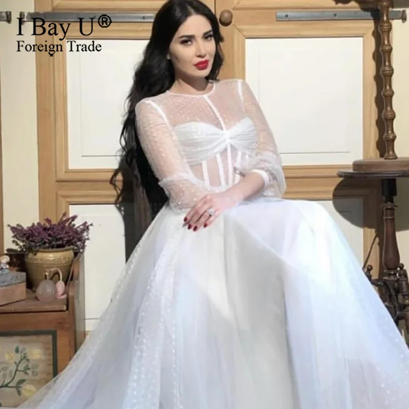 Modern White Pearls Ball Gown Wedding Dresses 2020 Ivory Cascading